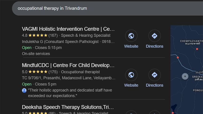 MindfulCDC achieved GMB ranking on google for the keyword “occupational therapy in Trivandrum”